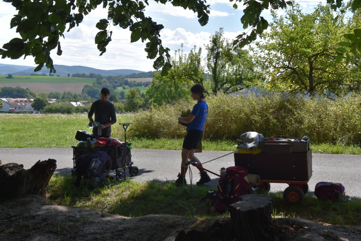 In Hösbach teilte sich die Gruppe: ein Teil lief tapfer weiter, der andere nahm die Bahn Richtung Laufach – ganz im Sinne der strategischen Kräfteverteilung. Die erste Gruppe kam gegen 14:30 Uhr an, die zweite etwa eineinhalb Stunden später. Die Stimmung? Ziemlich erschöpft, aber zufrieden – und dank der Gartendusche schnell wieder aufgeladen. Während die einen noch auf dem Weg war, erledigten die früher Angekommenen schon den Einkauf fürs Abendessen.